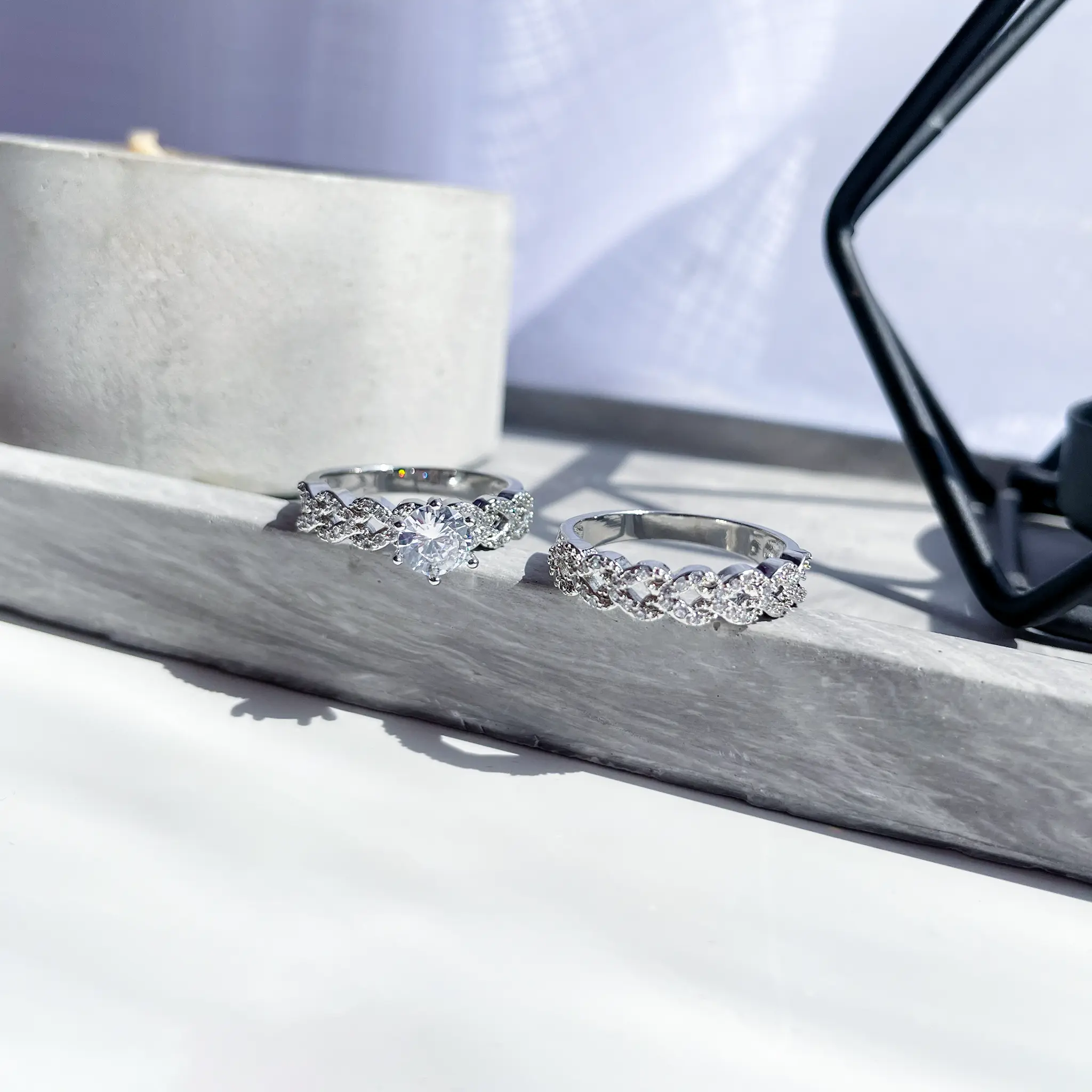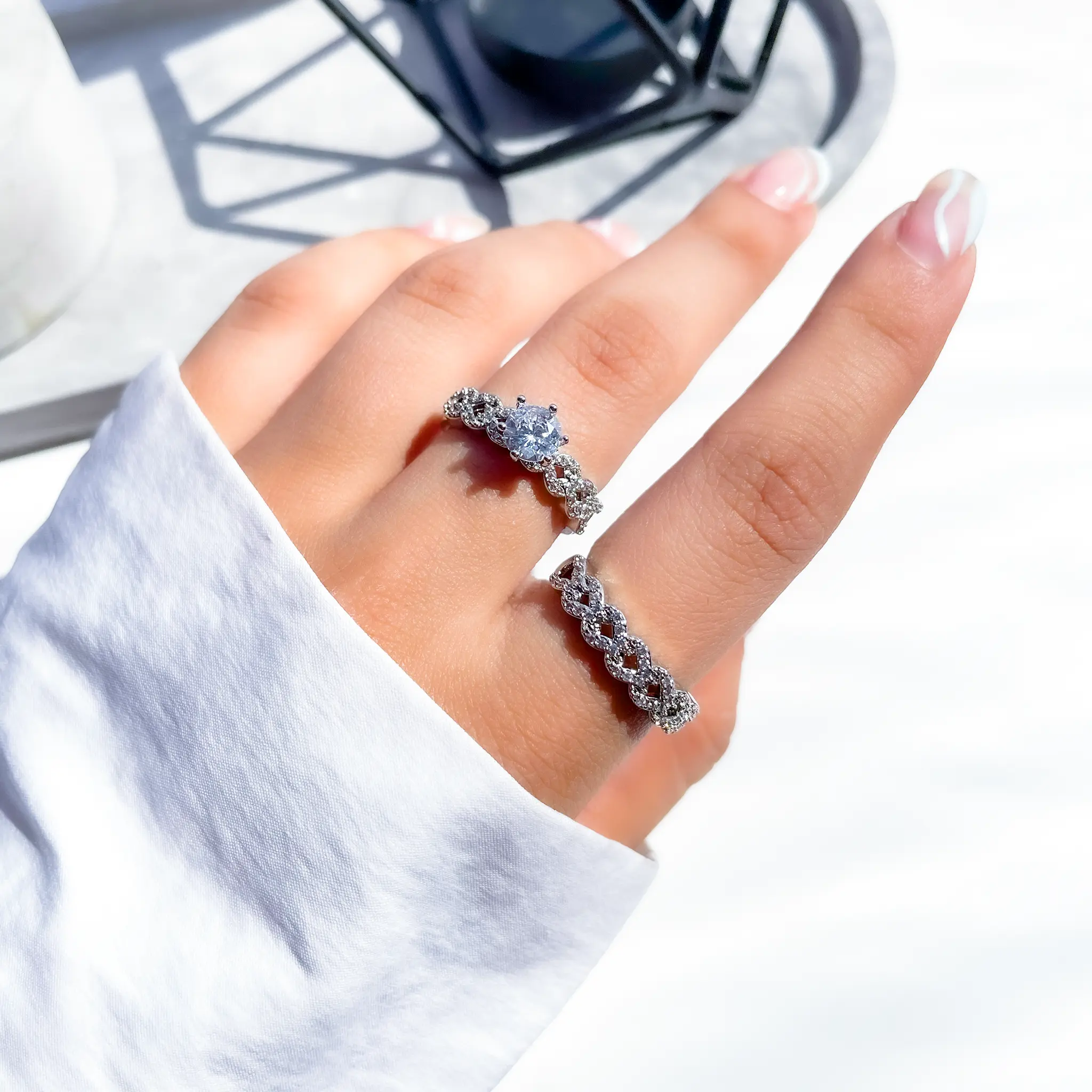 ست انگشتر حلقه گل جواهری آبکاری رودیوم
