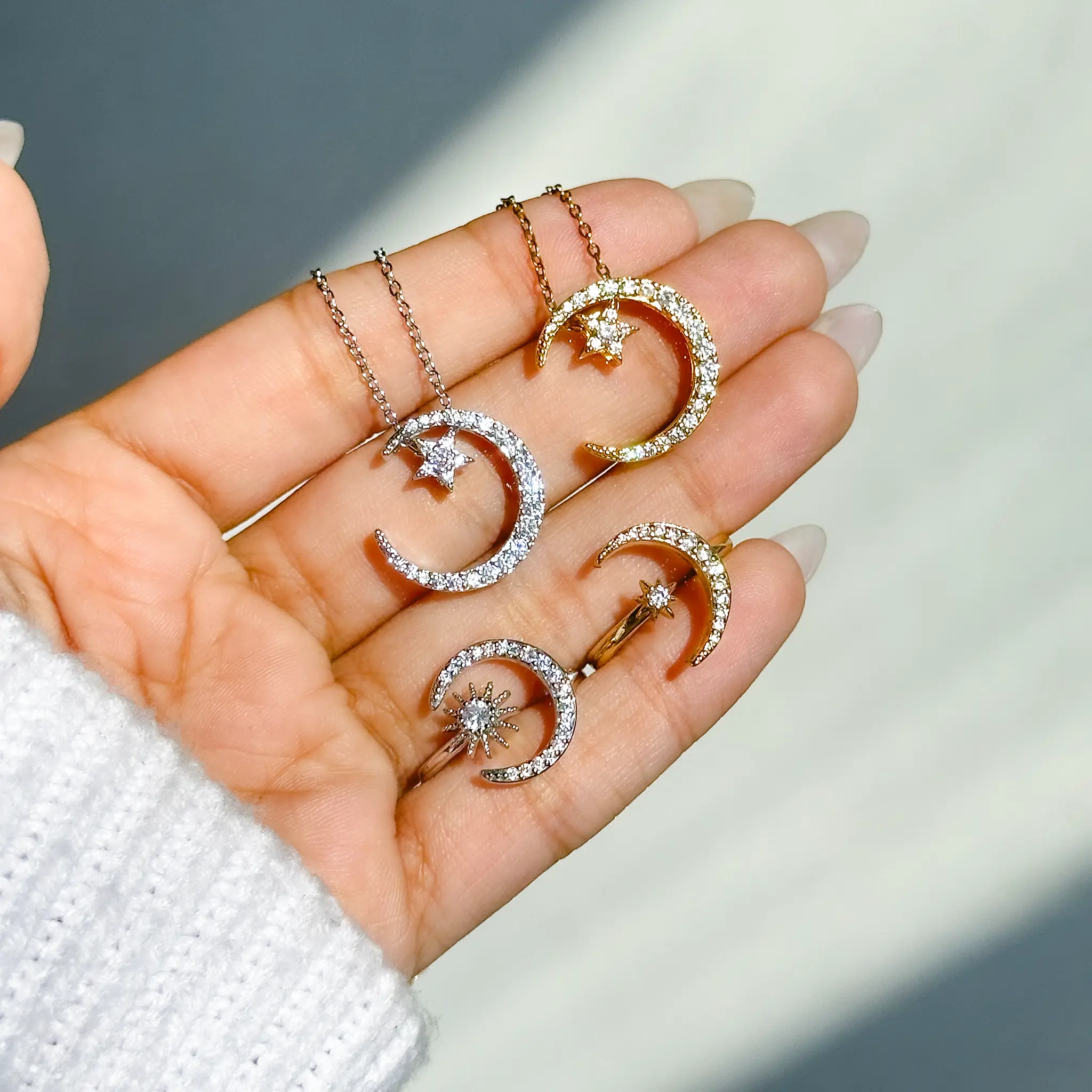 نیم ست ماه ستاره متحرک جواهری