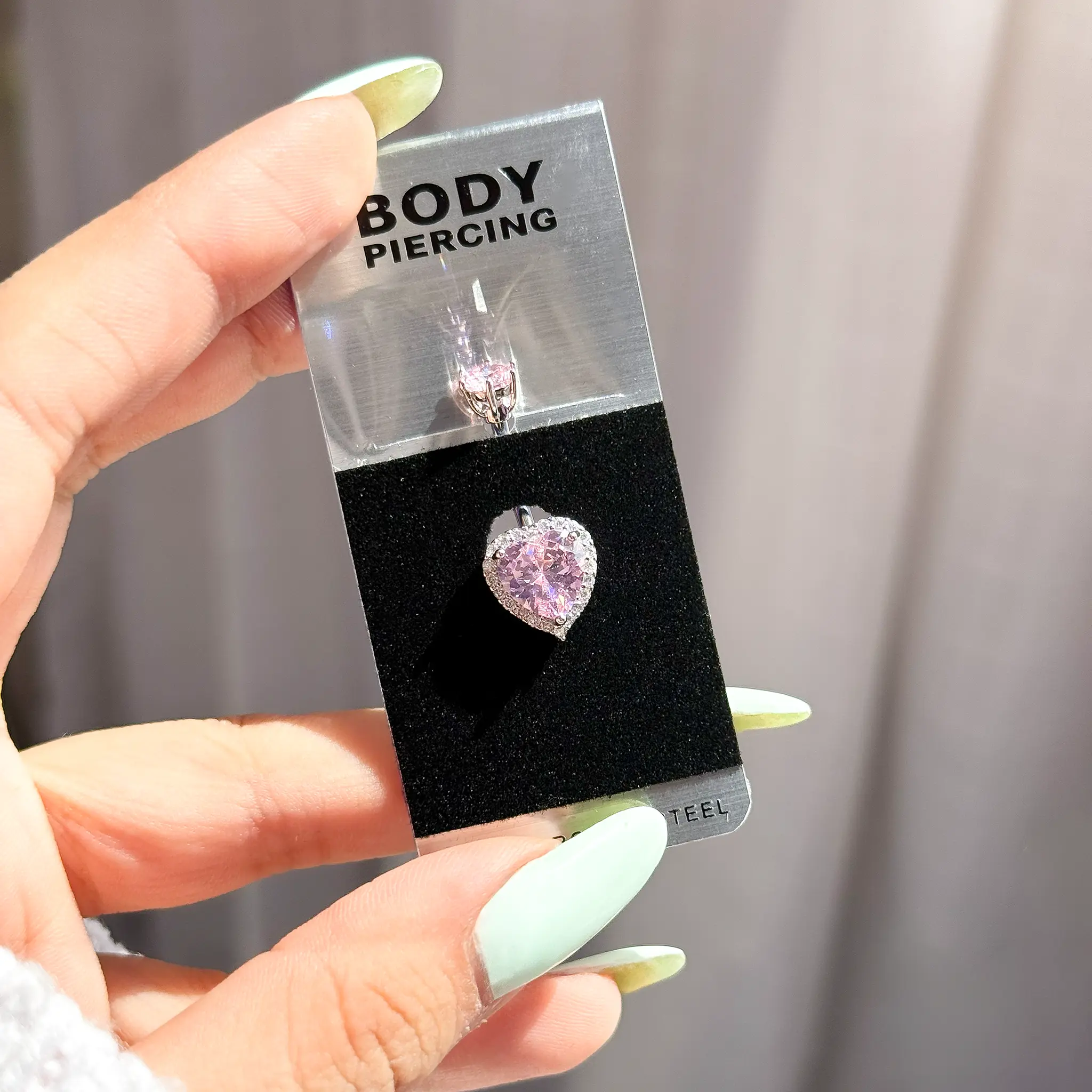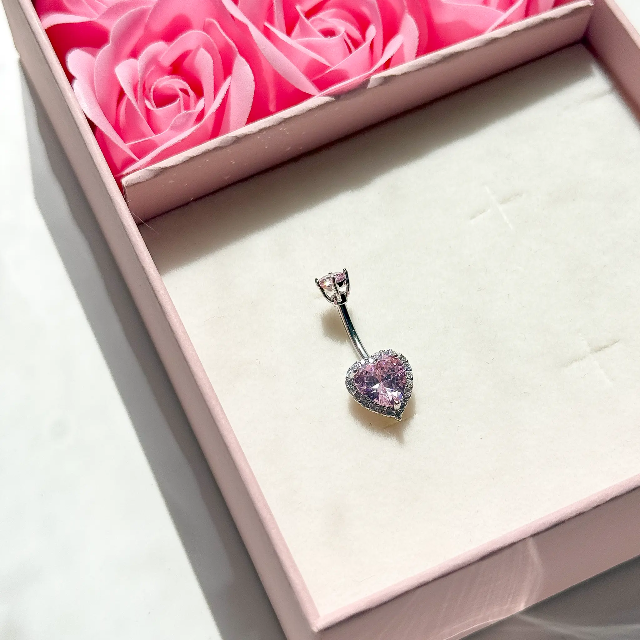 پیرسینگ ناف قلب جواهری آبکاری رودیوم و پین استیل