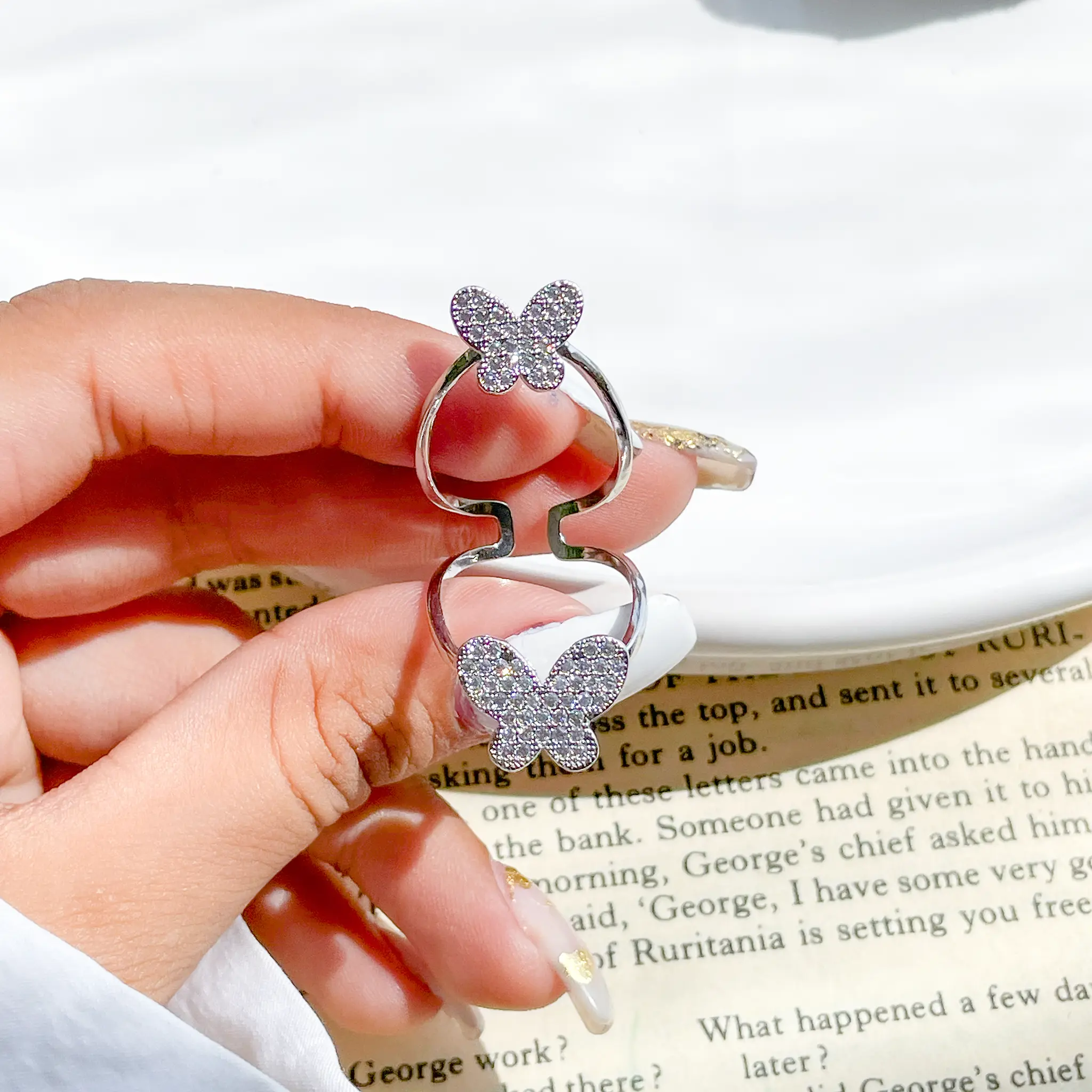 حلقه پروانه جواهری آبکاری رودیوم قابل تنظیم